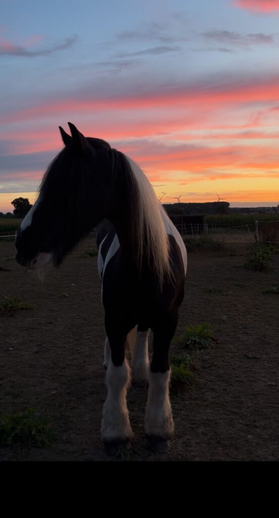 Eine 27 jährige Tinkerstute. Ausser, dass ihr schon einige Zähne fehlen und sie eine abklingende Pilzinfektion an den Hinterbeinen hat, geht es ihr eigentlich gut. Eigentlich, denn ihre Besitzerin hat sich für die Versorgung des Pferdes schon stark verschuldet. Das Tinkermädchen braucht dringend mehr Futter (Heucops) und auch die Pilzinfektion muss medikamentöse weiter versorgt werden. Aus gesundheitlichen Gründen ist die Besitzerin nicht mehr arbeitsfähig. Den Unterhalt des Pferdes kann sie sich einfach nicht mehr leisten. Zusätzliches Futter und Tierarzt schon gar nicht. Bei dem Besuch des Tinkermädchens fanden wir also 2 Notfälle vor. Der Mensch, zu gesundheitlichen Problemen noch einen dicken Batzen Depression drauf und natürlich hauptsächlich die Sorge um das Pferd. Wo sollen so betagte Pferde auch hin?! Wie viel Zeit hat das Tinkermädchen noch? Ihre Uhr tickt schon ordentlich laut. Sie magert ab und ist schwächer geworden. In ihren Augen sprach die Weisheit einer Seele, die schon viel erlebt hat. Und Sanftmut war zu sehen – von Aufgabe keine Spur.